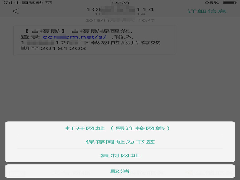 如下圖所示這樣的格式是正確的,網(wǎng)址部分呈藍(lán)色,這樣是可以正常打開的短信